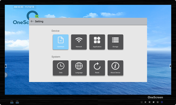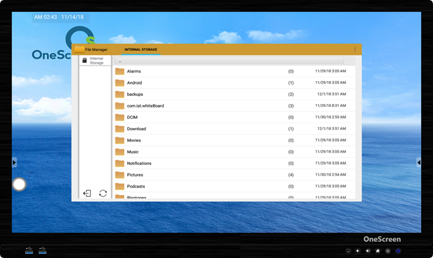 Pressing OneScreen home button will take you to the Android Home Screen as shown below. Here you will see the time, date, connectivity status and other icons whose purpose is shown in the table.