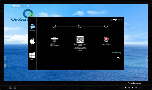 | Pressing on this icon will launch the Eshare Application. This application is used for the wireless screen mirroring. The Eshare application is shown on page no. 19. |