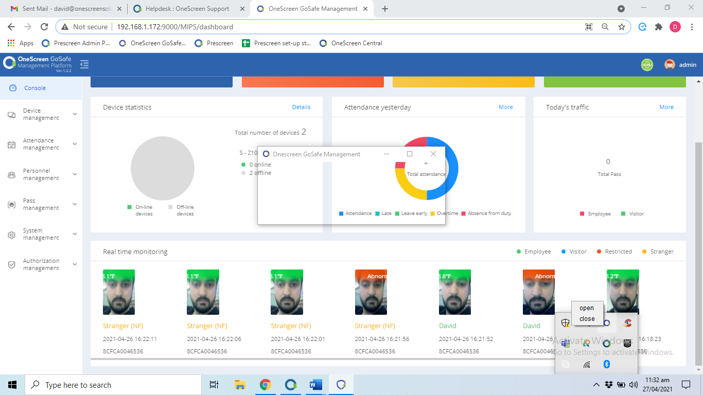 5. Scan the employee/visitor on the GoSafe device and check the Real-time monitoring inside the Management Platform to confirm that the issue has been resolved and the employee/visitor’s real name is being displayed.
