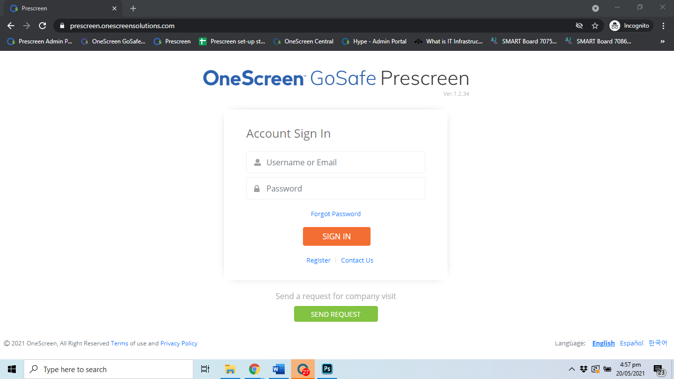 You can share the URL “prescreen.onescreensolutions.com” for visitors to open on their internet browsers to access the survey or send a request to access and fill the survey.