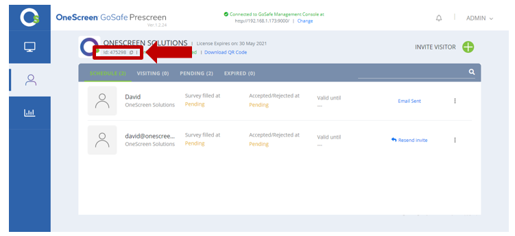 Step 1: Share the URL and company ID with the visitors using any media (poster, email, messaging etc.). The company ID is visible in the “survey listings tab” on the Prescreen software (shown below).