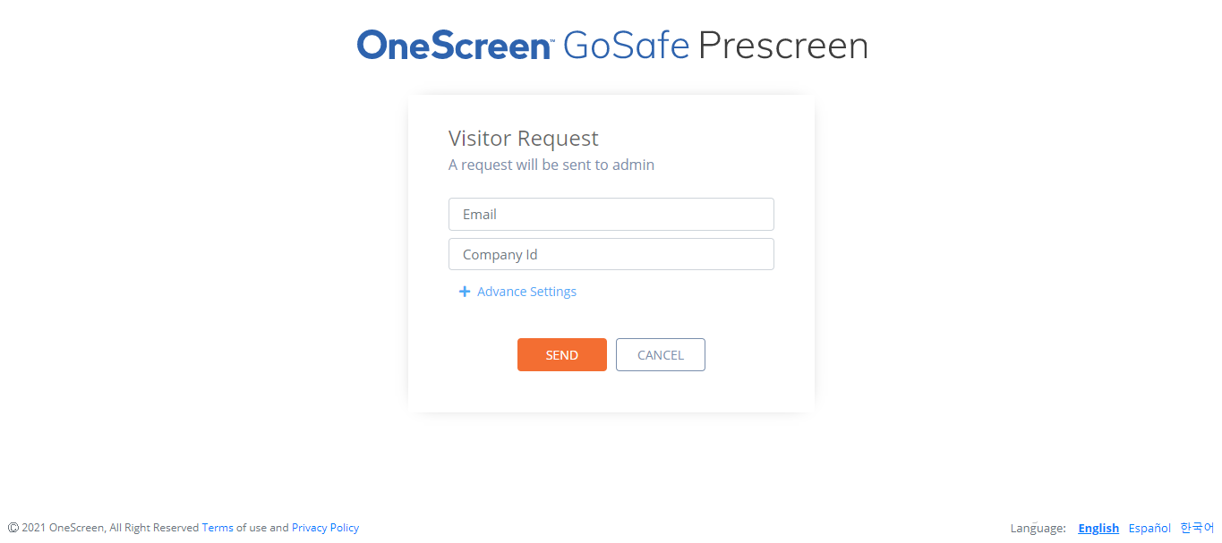 Step 4: Enter your email address and the company ID you noted in step 1. If needed, you can click on “Advanced Settings” to choose a start and end time for your visit. After entering all the information, click on “send”.