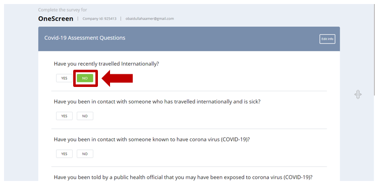 Step 8: Click on “Submit” to submit the survey. Depending on your answers, you will receive an email notifying you whether your visit request has been approved or rejected.