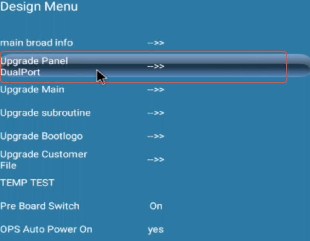 - Move down and select the Upgrade Panel DualPort option as shown in the picture below: